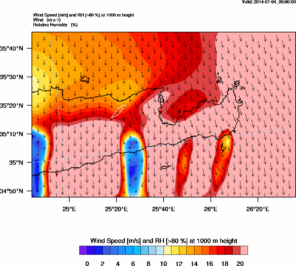 Graph 3: arw018.png - Wind Speed [m/s] and RH [>80%] at 1000 m height