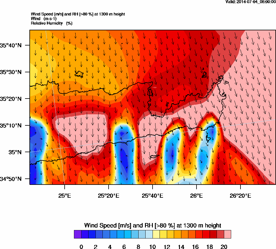 Graph 4: arw019.png - Wind Speed [m/s] and RH [>80%] at 1300 m height