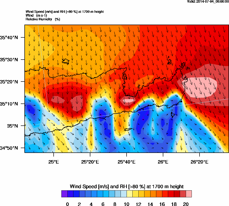 Graph 5: arw020.png - Wind Speed [m/s] and RH [>80%] at 1700 m height