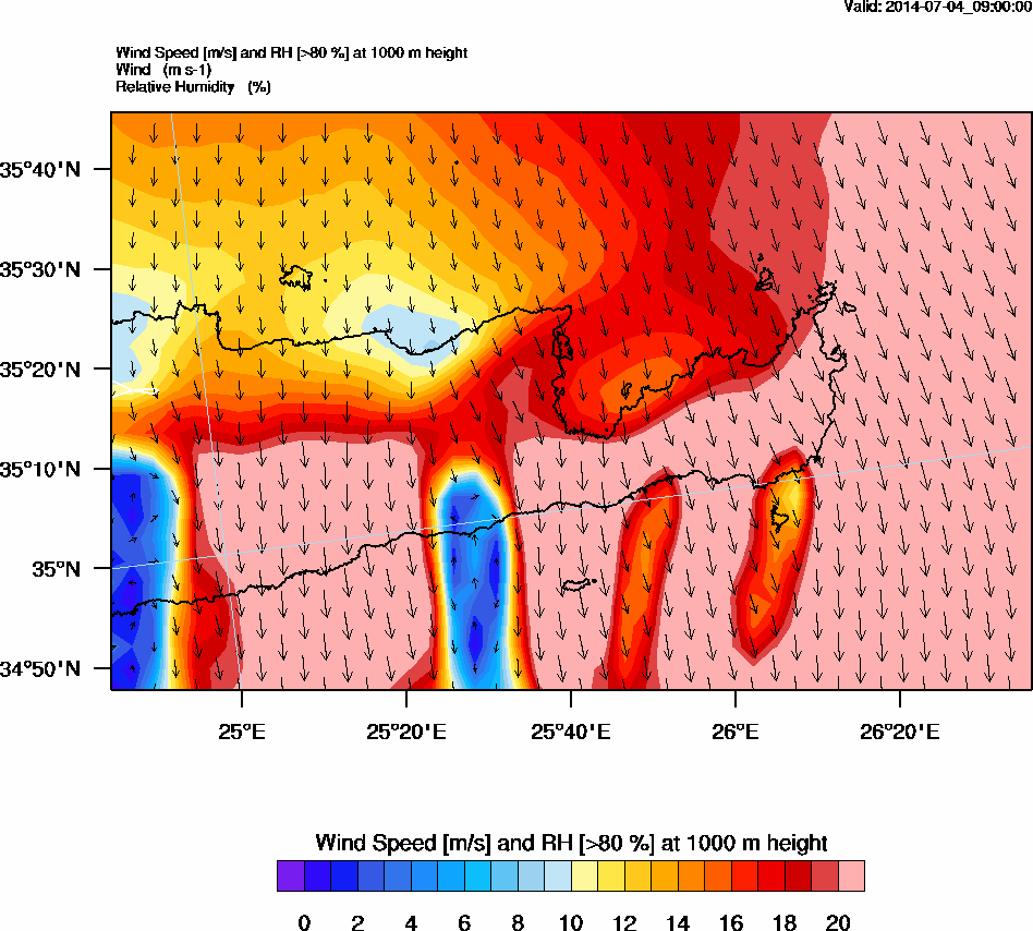 Graph 3: arw033.png - Wind Speed [m/s] and RH [>80%] at 1000 m height