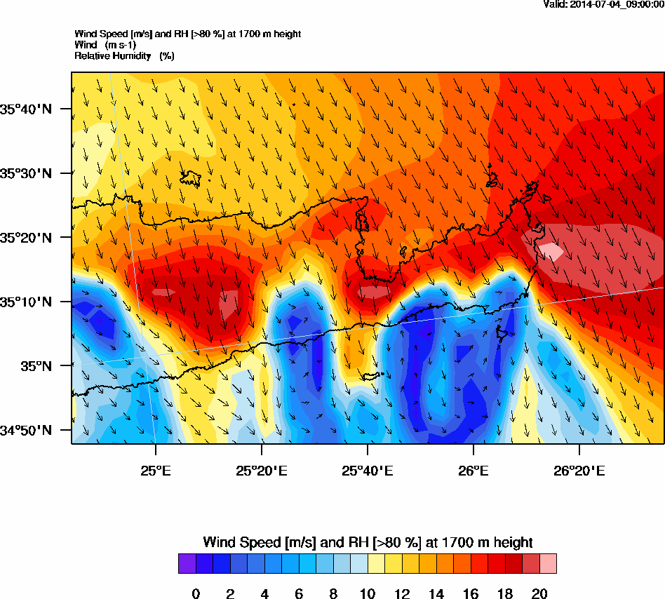 Graph 5: arw035.png - Wind Speed [m/s] and RH [>80%] at 1700 m height