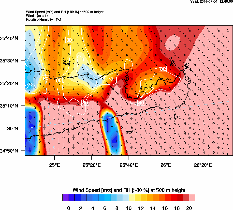 Graph 2: arw047.png - Wind Speed [m/s] and RH [>80%] at 500 m height