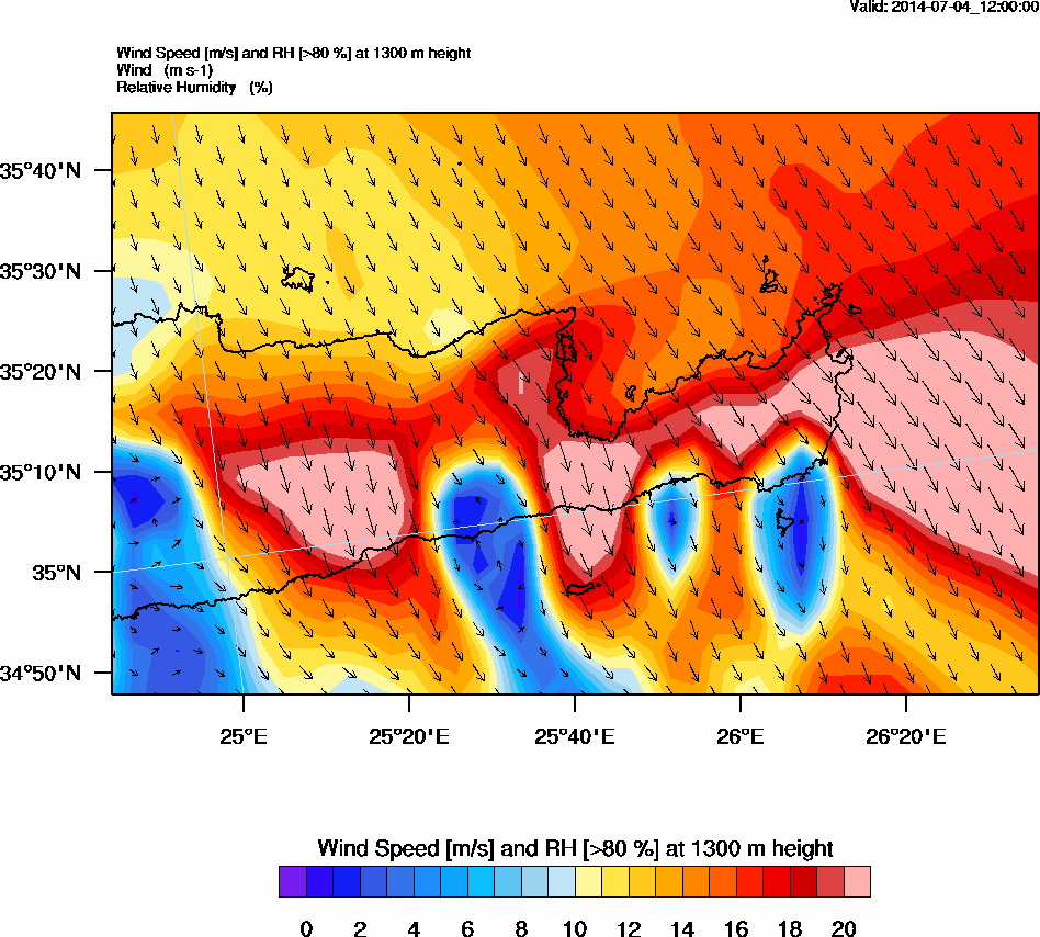 Graph 4: arw049.png - Wind Speed [m/s] and RH [>80%] at 1300 m height