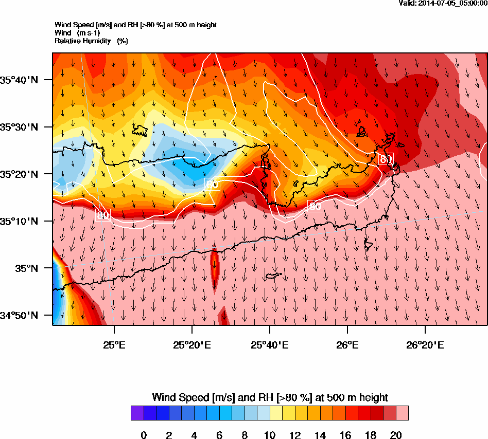 Graph 2: arw012.png - Wind Speed [m/s] and RH [>80%] at 500 m height