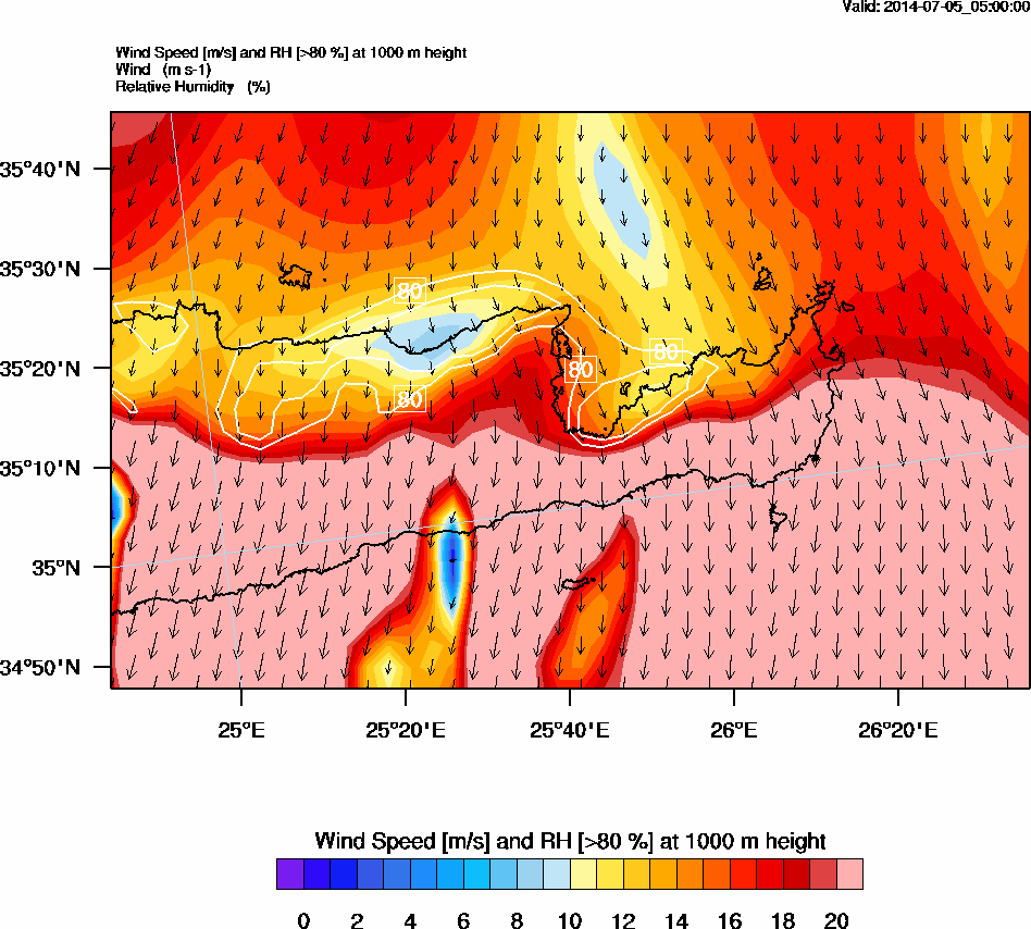 Graph 3: arw013.png - Wind Speed [m/s] and RH [>80%] at 1000 m height
