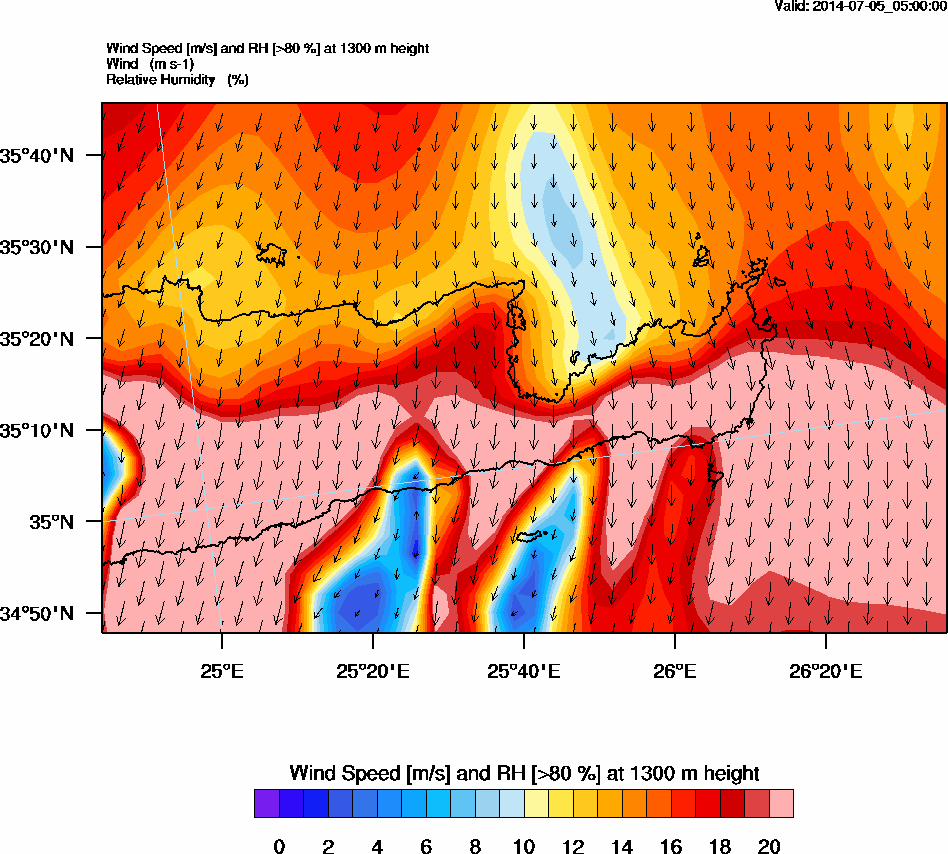 Graph 4: arw014.png - Wind Speed [m/s] and RH [>80%] at 1300 m height