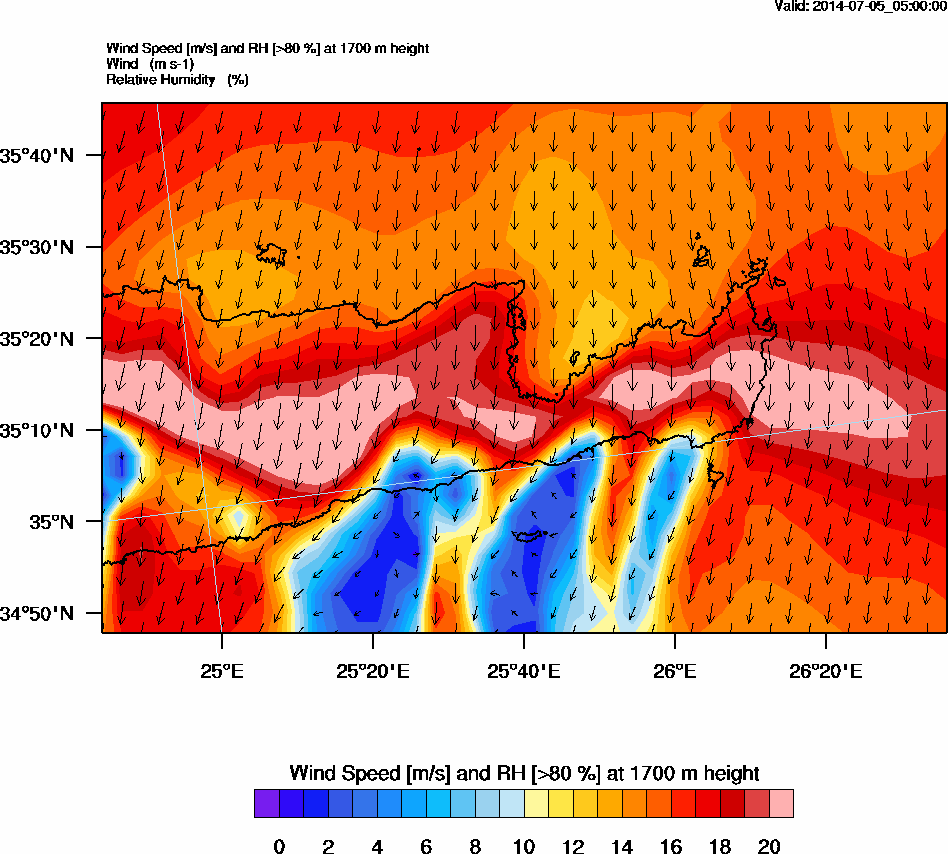 Graph 5: arw015.png - Wind Speed [m/s] and RH [>80%] at 1700 m height