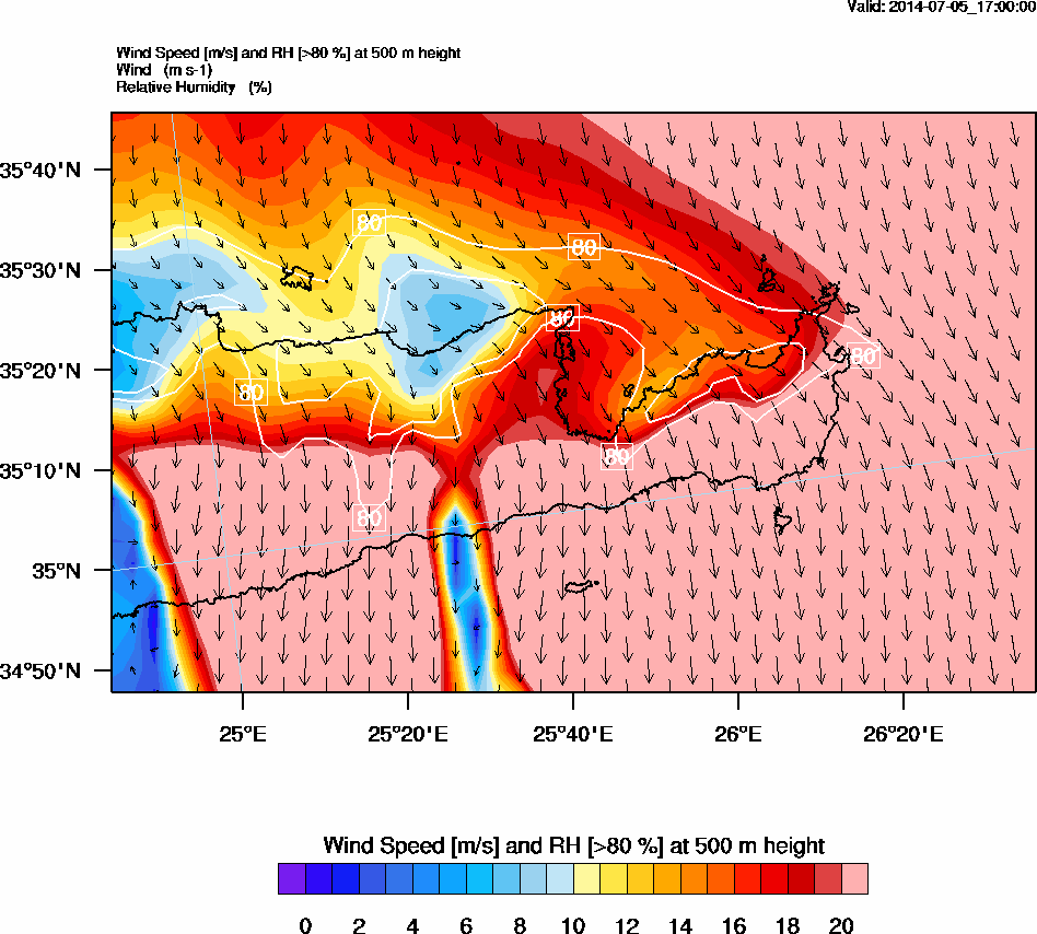 Graph 2: arw072.png - Wind Speed [m/s] and RH [>80%] at 500 m height