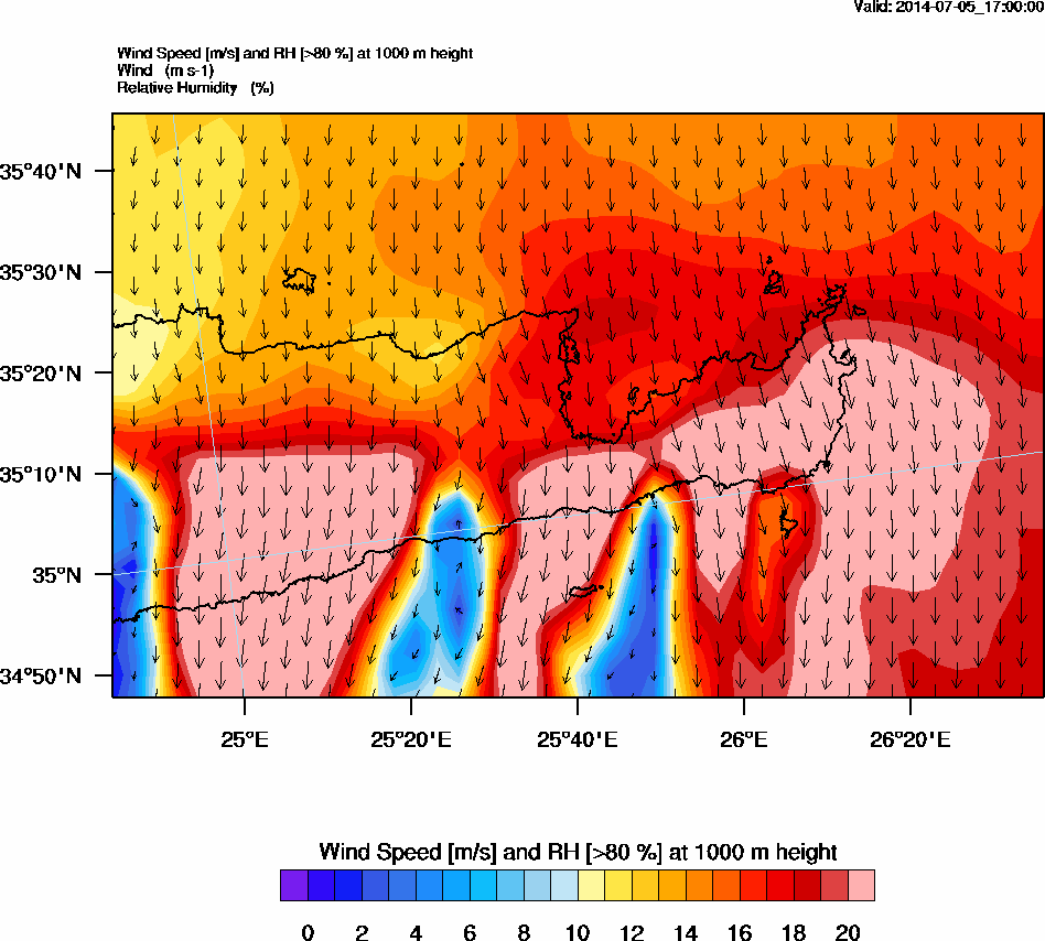 Graph 3: arw073.png - Wind Speed [m/s] and RH [>80%] at 1000 m height