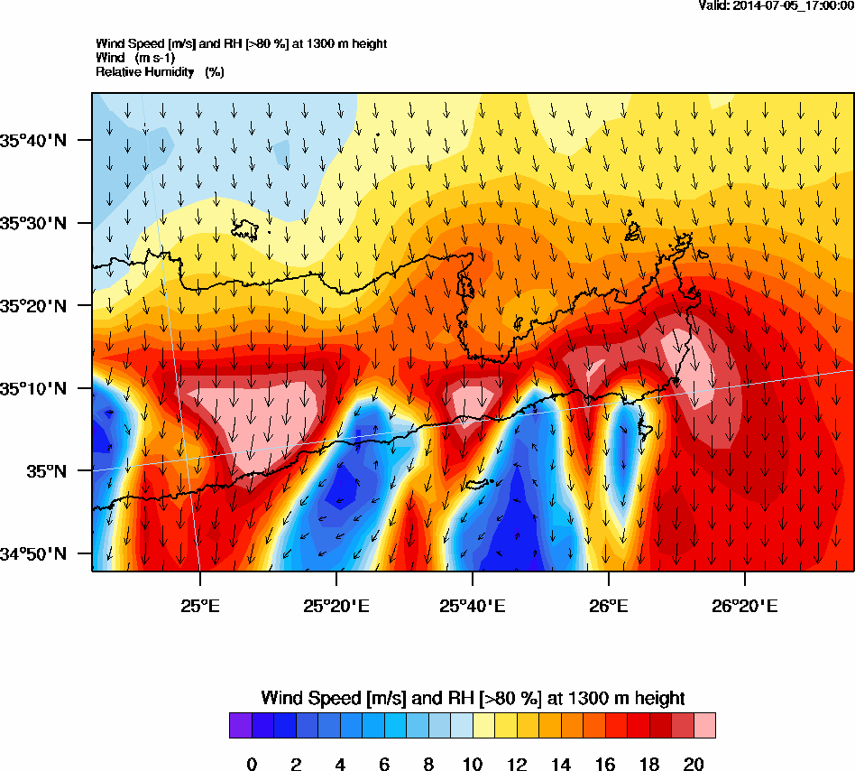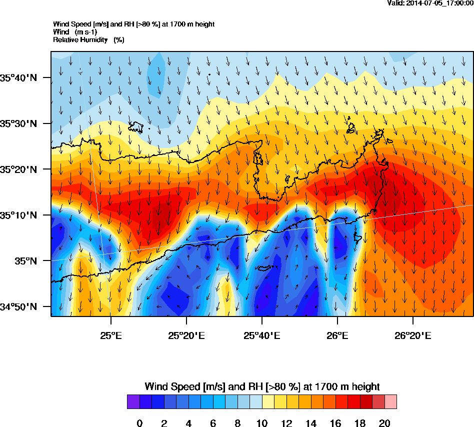 Graph 5: arw075.png - Wind Speed [m/s] and RH [>80%] at 1700 m height