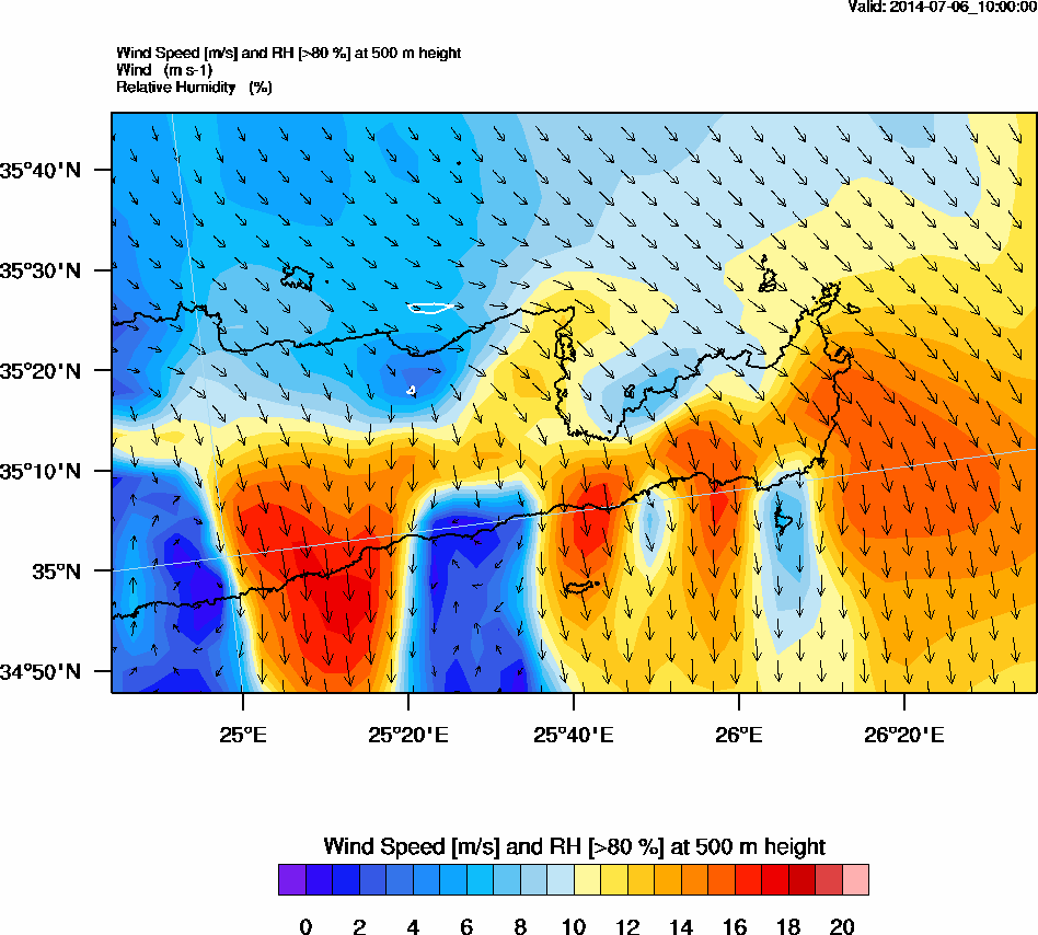 Graph 2: arw037.png - Wind Speed [m/s] and RH [>80%] at 500 m height