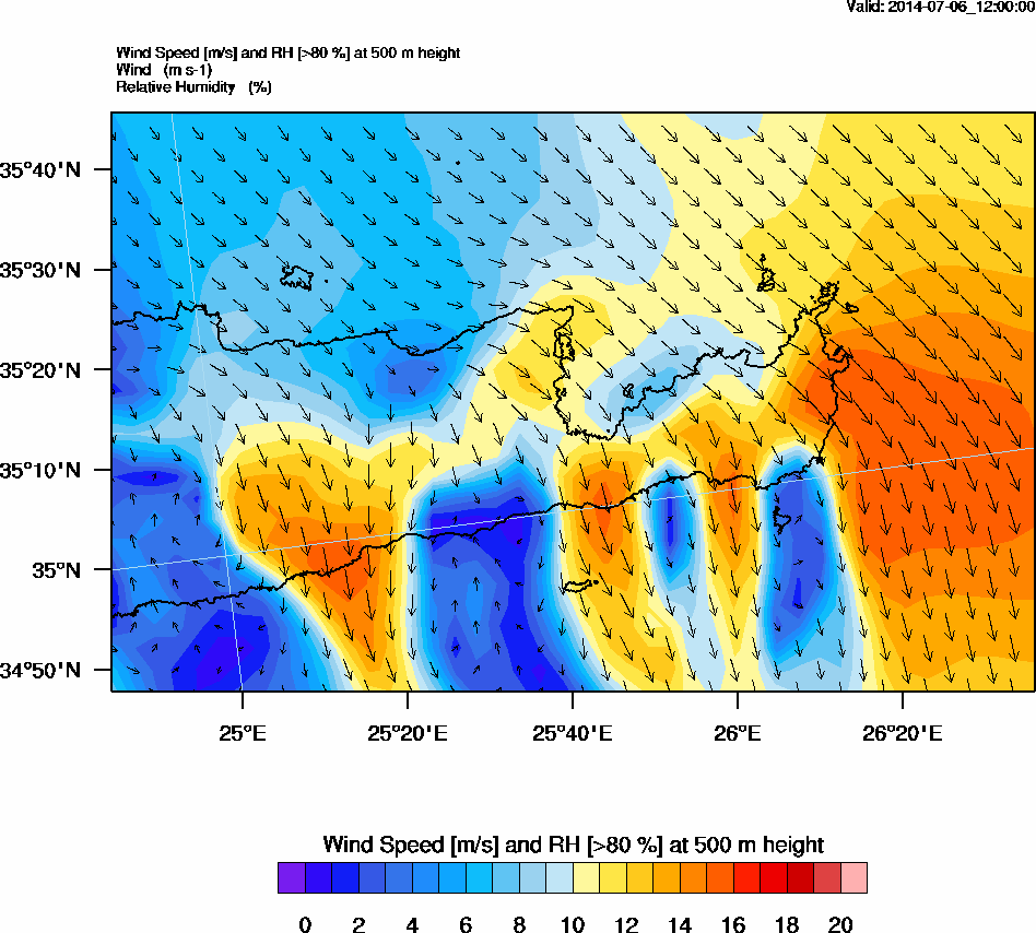 Graph 2: arw047.png - Wind Speed [m/s] and RH [>80%] at 500 m height
