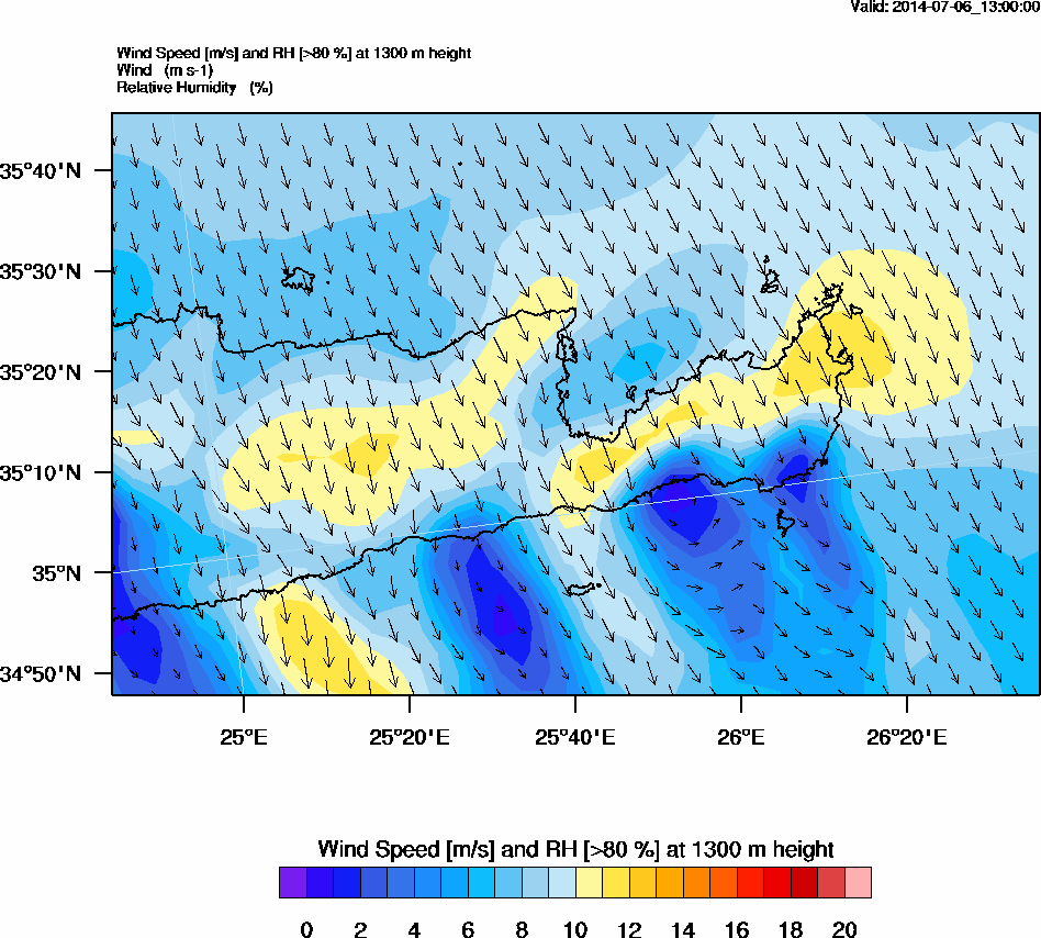 Graph 4: arw054.png - Wind Speed [m/s] and RH [>80%] at 1300 m height