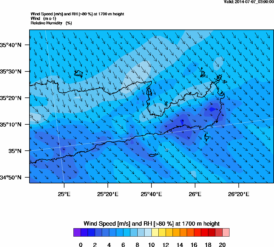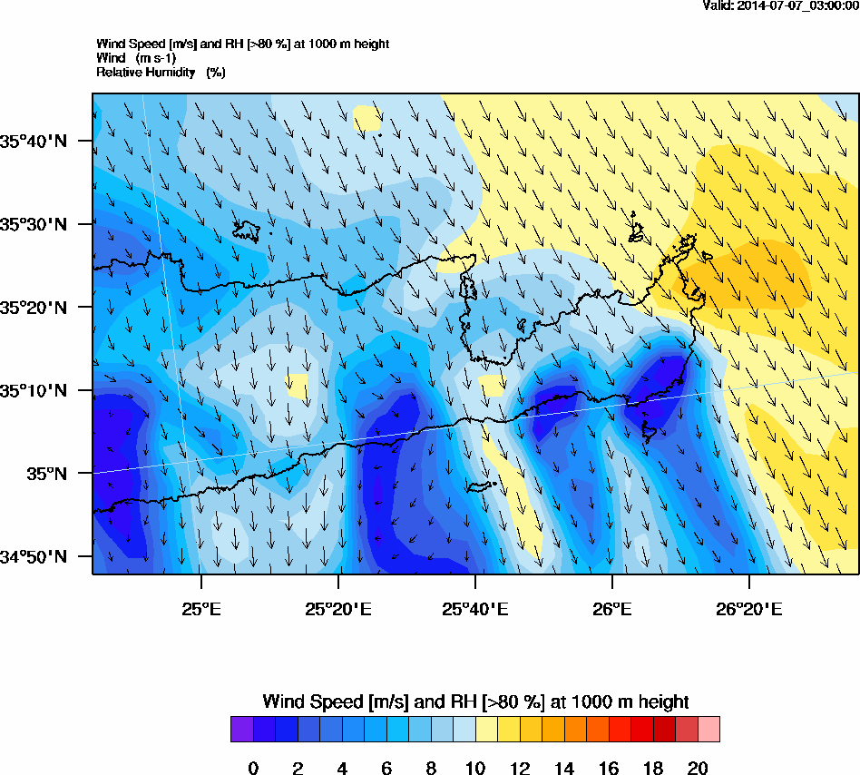 Graph 3: arw003.png - Wind Speed [m/s] and RH [>80%] at 1000 m height