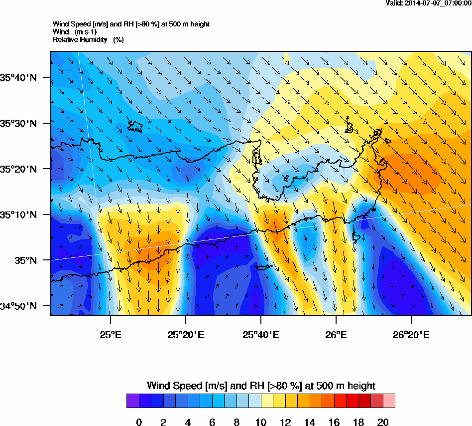 Graph 2: arw022.png - Wind Speed [m/s] and RH [>80%] at 500 m height