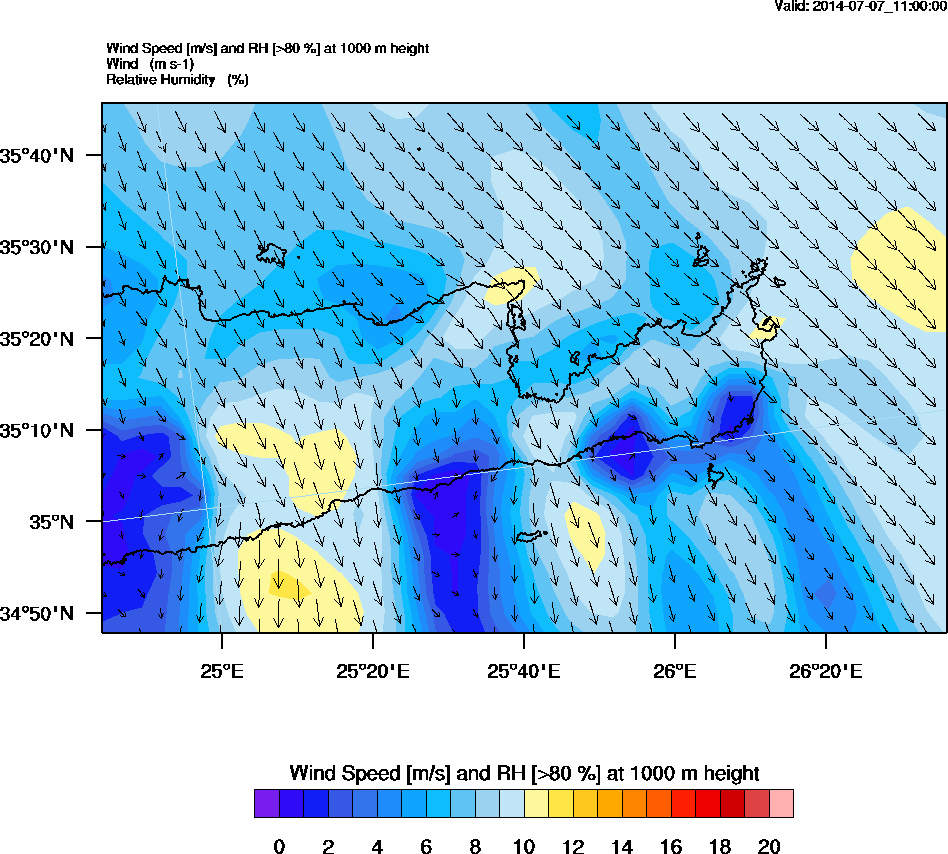 Graph 3: arw043.png - Wind Speed [m/s] and RH [>80%] at 1000 m height
